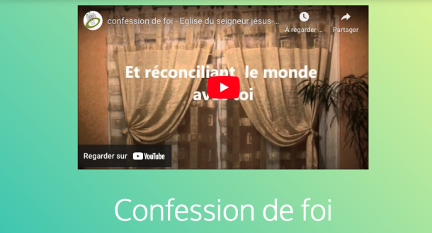 Cette confession est celle de l'église du seigneur jésus-christ. Elle a pour source la bible et est conforme aux principes fondamentaux de la doctrine du christ.